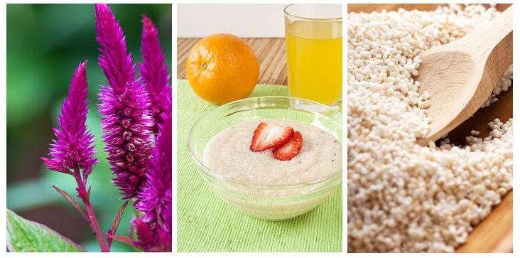 Полезные свойства: Семена содержат в себе высокое количество белка, лизина и другие аминокислоты. Помимо этого, в них содержится железо, кальций, магний, фосфор и калий, которые являются важными элементами в рационе питания беременных женщин и диет, при лечении заболеваний нервной и опорно-двигательной систем. В семенах также есть вещество сквален, которое приостанавливает процесс старения. Способ приготовления: Зерна амаранта достаточно жесткие, поэтому варятся примерно 20-25 минут. На один стакан каши требуется 2,5 — 3 стакана воды. Во процессе варки требуется периодически помешивать кашу, чтобы она лучше впитала в себя воду. Будет хорошо и в качестве соленого гарнира, и в качестве сладкой каши. Также зерна данного растения могут раскрыться совсем с неожиданной стороны и превратиться в фаст-фуд, а именно в поп-корн. Однако мука из щерицы получается плотной, поэтому готовить из нее выпечку лучше с добавлением других видов муки, чтобы изделия получались воздушными.