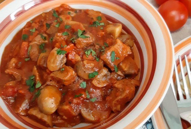 Вкусный гуляш из индейки в мультиварке