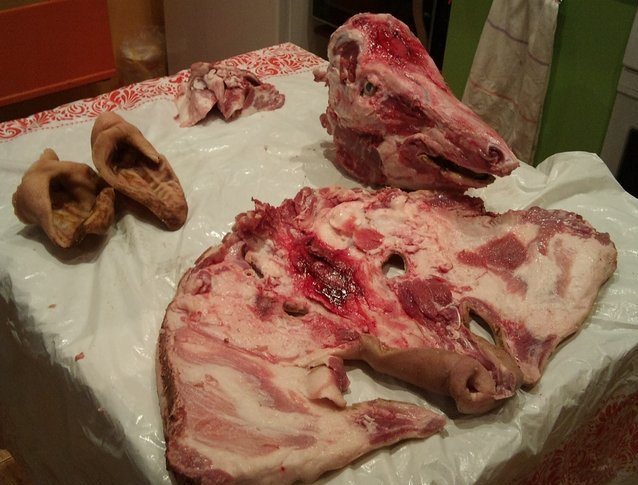 1. Как оказалось, из свиной головы можно приготовить не только холодец, но и замечательную закуску — рулет из свиной головы в домашних условиях.