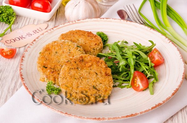 - Подогреваем сковороду с большим количеством масла. Добавляем туда котлеты и обжариваем их до готовности с двух сторон.