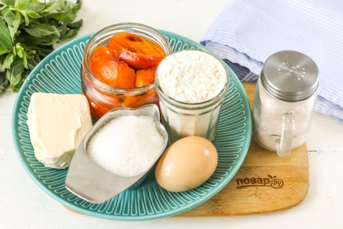 Также потребуются пшеничная мука, сливочное масло, сахар, разрыхлитель для теста, ванилин и куриное яйцо.