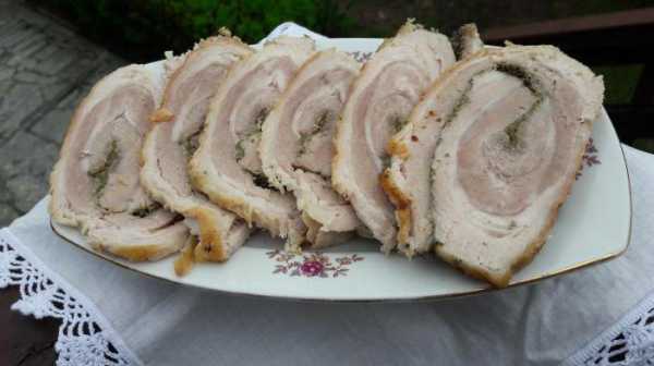 Рулет из подчеревка прекрасно запекается в рукаве. При этом блюдо получается невероятно сочным и нежным. Для его приготовления нам понадобится: