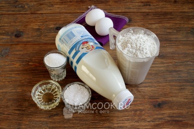 Для приготовления блинчиков на молоке без дрожжей возьмем продукты по списку.