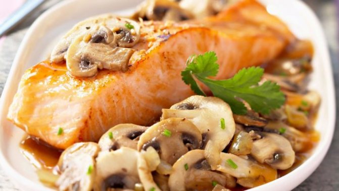 Семга тушеная с грибами
