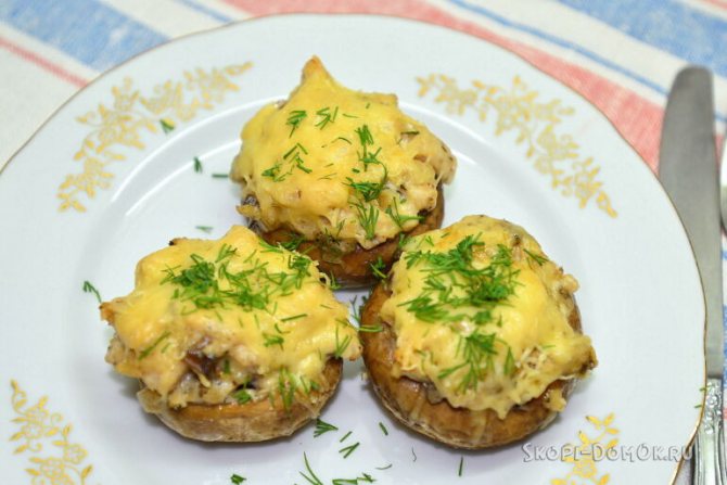 Рецепт фаршированных шампиньонов, запеченных в духовке с плавленым сыром