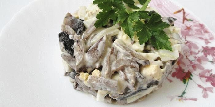 - Салат из куриных сердечек с грибами